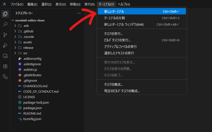 なお、以降のnovelaid-editor-clone、novelaid-editor-nextのアプリ名は適宜好みのものに読み替えて下さい。